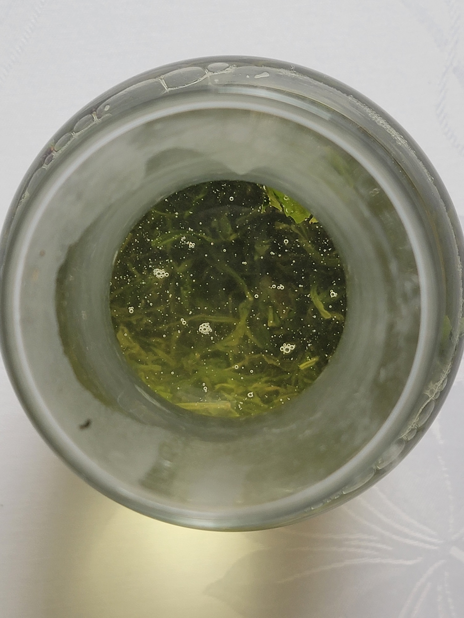 The hotter the water, the faster the tea will exude this color; and as it accumulates, this green will concentrate and darken. This isn’t a science, but I don’t like when the tea is anywhere near this color. I prefer it much paler, and much more clear. You can experiment and find what you like, but I’ll restate that the flavor of this tea, seemingly more-so than many others I’ve tried recently is very dependent and finnicky with temperature. So if you’re finding that you’re not really enjoying it as much as you believe you should be, it’s probably a temperature issue, or you’re brewing it too strongly. Weaker seems to be my preference for this.