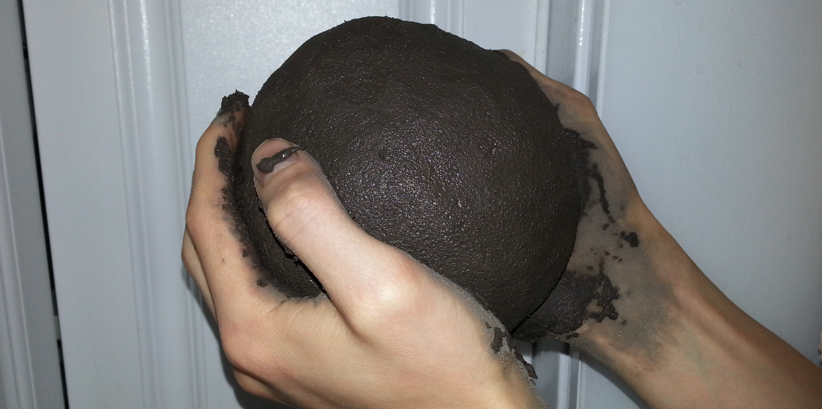 When I took the ball out of the food processor it really reminded me of the wet clay I filtered from the soil in my backyard several years ago (pictured below). After playing around with the marzipan for a bit, I felt the consistency and elasticity of it was better than any clay I’ve tried to make so far. I jokingly said to my wife “I bet I can make little edible cups from this.”