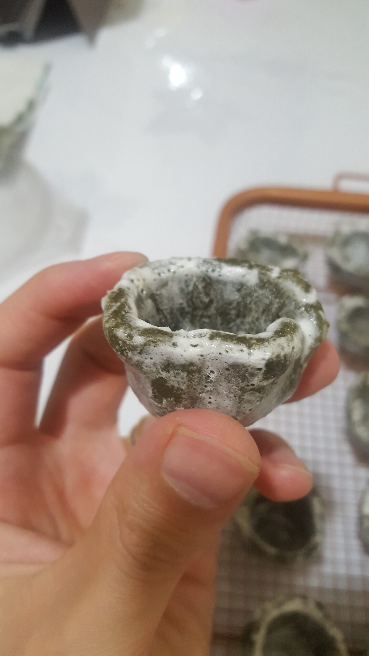 15 minutes later I had a tray of cups — mostly small, 2 cups a little bigger, and 1 cup that can probably hold 100ml. Even at this stage they were passable as crudely made clay cups and on any other day my creativity probably would have stopped there.