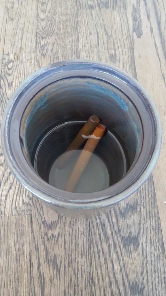 The second test was to use water which I manipulate with clay. I have a ceramic jar full of filtered which has been sitting approximately 2 weeks submerging clay bars from Bizen. The second test was seeing if (compared to the unboiled water) something would change, and if so, how much.