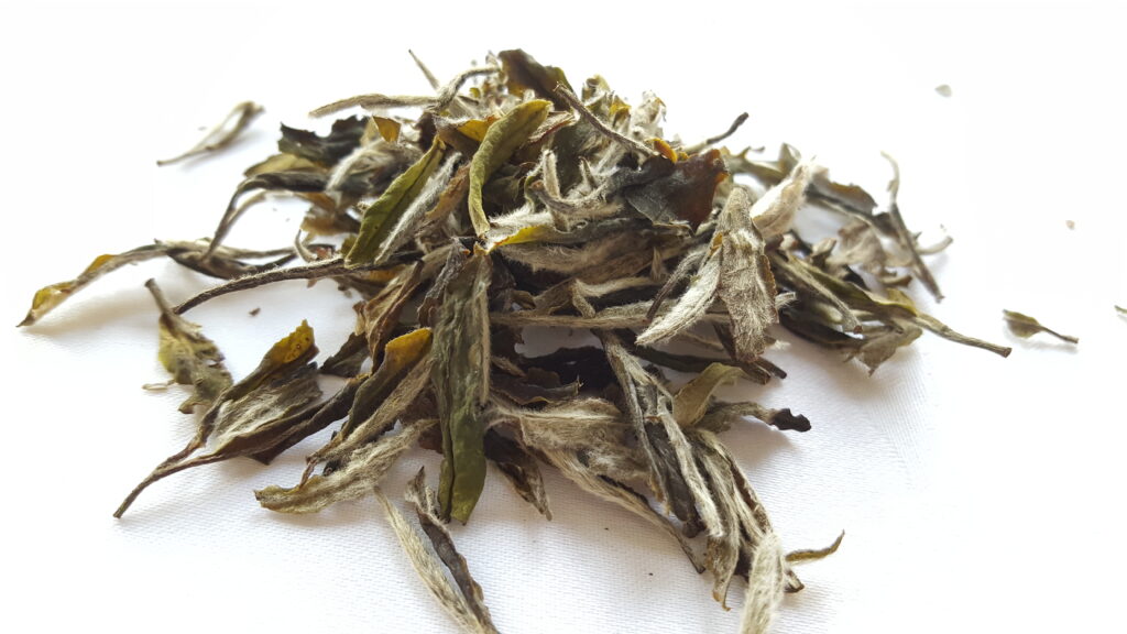 Looking at the over all quality of white tea, sub-classes are arranged by the type of leaf material picked from the bush. Silver Needle (Yin Zhen), White Peony (Mu Dan), Gong Mei, and Shou Mei. There are some producers that don’t pick a silver needle and instead focus on just making a high end Mu Dan, this producer does a little of both. This tea consists of the silver needle and the first leaf. Slightly lower quality mu dan teas will also include the 2nd leaf. In the quality spectrum Mu Dan tea is the ‘2nd level’ of white tea classification and generally costs much less than silver needles. Silver Needles aka Yin Zhen is the highest classification of quality and consists of only unopened buds of the tea leaf, I sell a silver needle tea too but a lot of white tea drinkers prefer a Mu Dan tea to a silver needle tea due to the increase of flavor that the slightly more mature leaf gives to the final product compared to just being the buds.